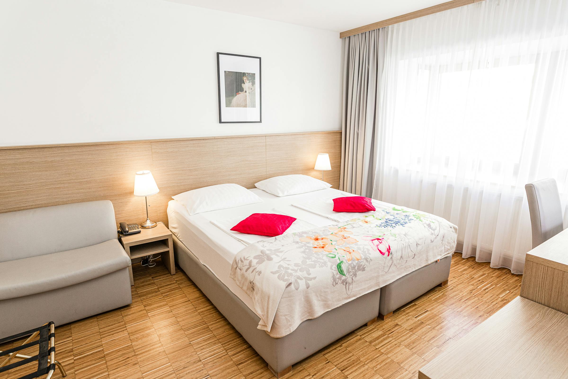 We offer rooms of different sizes, functionally equipped, without any unnecessary items. The rooms can be towards the street or inner courtyard.